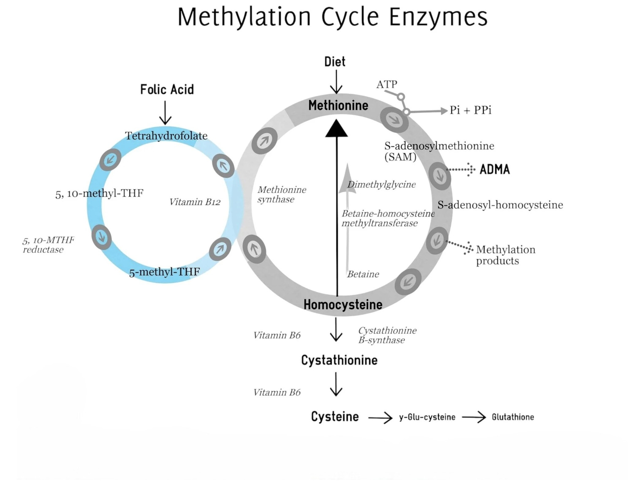 For B vitamins to support healthy methylation, check out Basic B Thorne, B Activ Xymogen, or Methyl B Complex. For further homocysteine support you can add TMG Allergy Research Group and SAM-e Jarrow 200 or 400. For combination products that support homocysteine levels check out Methyl Protect Xymogen, Methyl Guard Plus Thorne, Homocysteine Plus Allergy Research Group, or Cardio B Ortho Molecular.