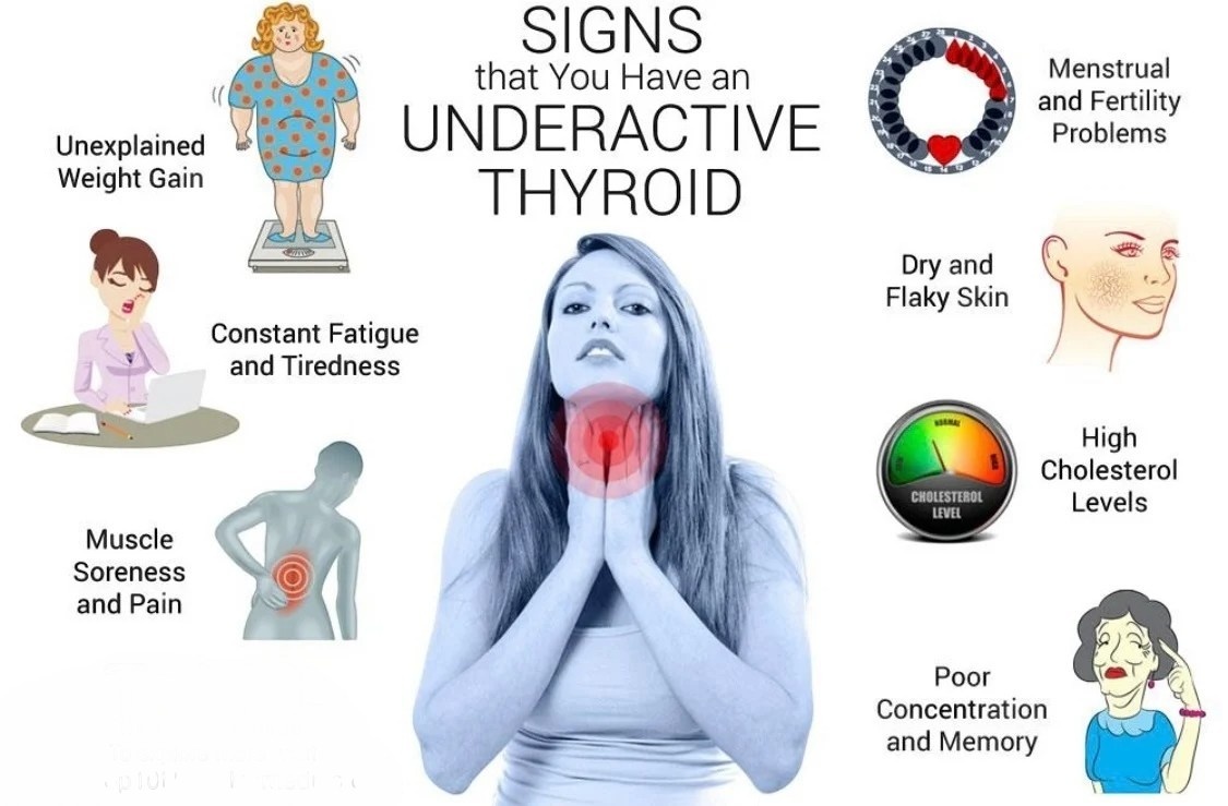 Some reasons for low thyroid function include genetic programming, eating a low calorie diet, not eating enough thyroid nutrients such as iodine, tyrosine, B12, iron, selenium, zinc, folic acid, and B vitamins, eating anti-thyroid foods (goitrogens) such as wheat, rye, barley, oats, soy, cruciferous vegetables, and millet, chronic stress or physical trauma, intaking fluoride or chlorine, or taking medication such as estrogen and lithium, antidepressant, sulfa drugs, or antidiabetic drugs, which are thyroid-inhibiting drugs.