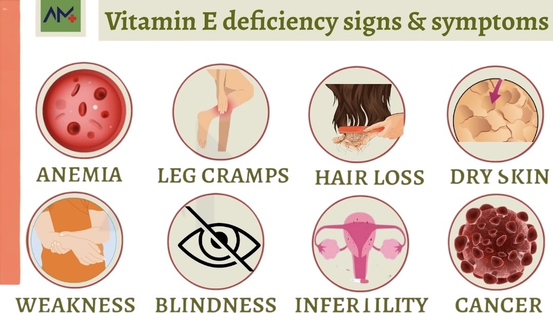 General signs and symptoms of vitamin E deficiency include lethargy, apathy, reduced concentration and a lower immune response. The first sign of vitamin E deficiency may be loss of red blood cells due to fragility caused by loss of cell membrane protection or by oxidized polyunsaturated fatty acids weakening the cell membranes and causing rupture. It is hard to diagnose symptomatically due to its wide range of effects on the nervous, reproductive, muscular, and circulatory systems; other nutrients may also mask a vitamin E deficiency.